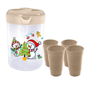 SET PICHEL (3L) + 4 VASOS BAMBU DECORADO