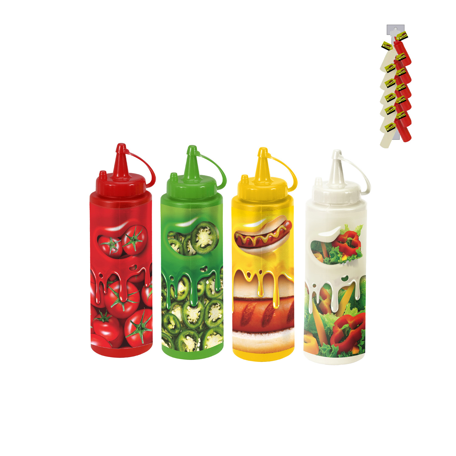 Gracias a sus gráficos decorativos coloridos, esta salsera se adapta perfectamente tanto a cocinas modernas como a puestos de comida, restaurantes, cafeterías, food trucks y hogares. Su boquilla de precisión permite un vertido controlado, mientras que el tapón de seguridad evita derrames y mantiene el contenido protegido.