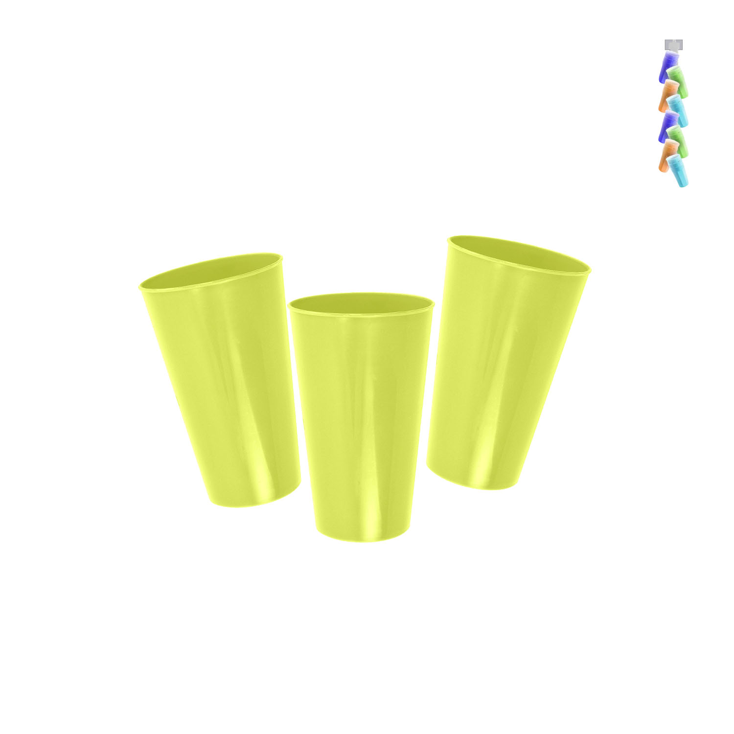 Incluye 3 vasos en colores surtidos vibrantes que le dan vida a tu cocina o mesa. ¡Prácticos, alegres y funcionales!