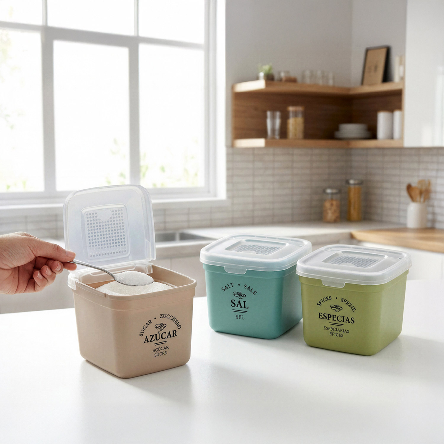 Nuestros clientes suelen buscar este producto como: recipiente plástico para cocina, contenedor de alimentos, envase para azúcar, sal y especias, recipiente con tapa hermética, producto Guateplast. Especieros.
