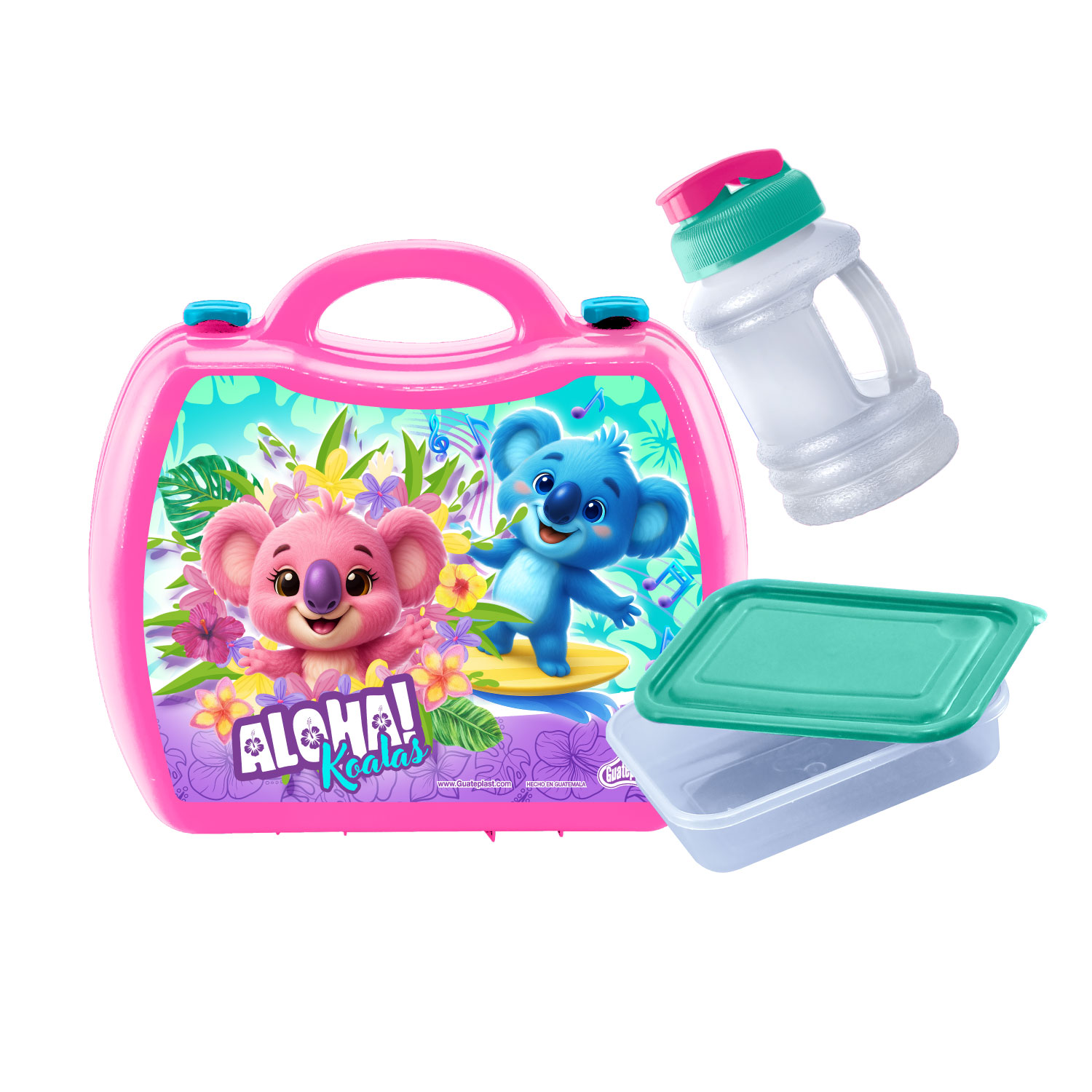 Set Lonchera Feliz que incluye tazón y refresquero plástico. Lonchera plástica práctica y resistente que permite resguardar alimentos. Práctica por su abre fácil y con figuras divertidas para los niños. Diseñada con agarrador para su uso fácil, la tapa se asegura con dos sujetadores a los extremos.