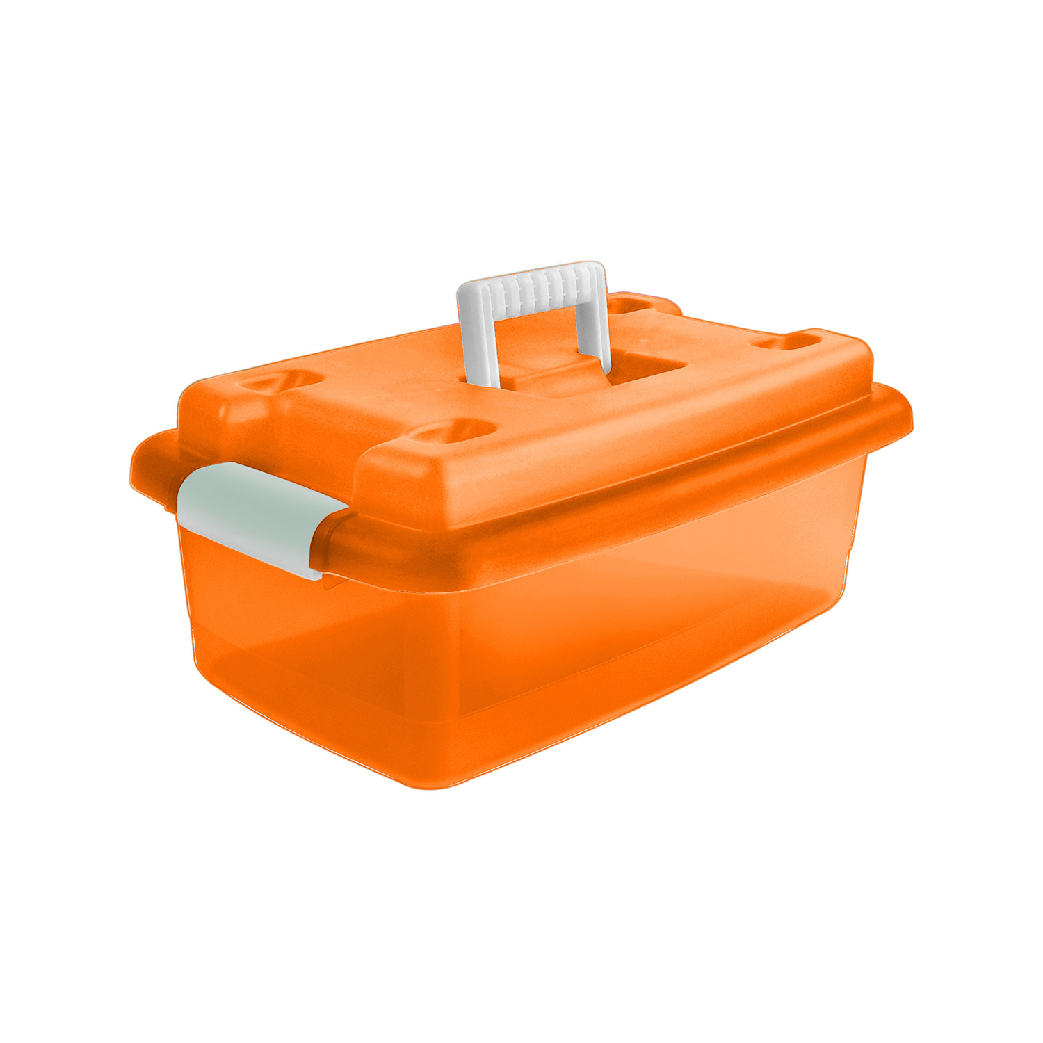 Caja Click de 15 litros. Diseñada con agarrador para su uso fácil, la tapa se asegura con dos sujetadores a los extremos que se unen con la base.